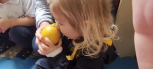 L’ intero Team ha a cuore l’impegno ad educare le nuove generazioni promuovendo uno stile di vita sostenibile e rispettoso delle risorse del Pianeta e per questo abbiamo fatto in modo che il valore dell’importanza del cibo e della natura che lo dona, passasse attraverso un’esperienza positiva! Infatti la dottoressa Francesca Cannata ha proposto varie attività ludiche accostate ad attività esperienziali che hanno aiutato i bambini e le bambine ad essere più consapevoli circa l’importanza della presenza di alcuni alimenti nella nostra vita, come la frutta e la verdura, destando in loro curiosità e divertimento!