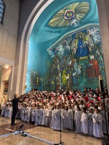 A seguire è stata una grande festa musicale con il coro composto da 260 alunni/coristi diretto dal Maestro di Musica Tiberio che ha coinvolto insegnanti e genitori. Un saluto in grande stile prima delle vacanze natalizie! La potenza delle voci unite dei bambini, l’atmosfera natalizia e la maestosità della nostra Chiesa ci hanno regalato un momento di grande emozione e magia. Subito dopo è stata consegnata una targa di merito alla maestra Virginia Dolcimascolo, che ha concluso il suo percorso di maestra all’interno dell’Istituto.